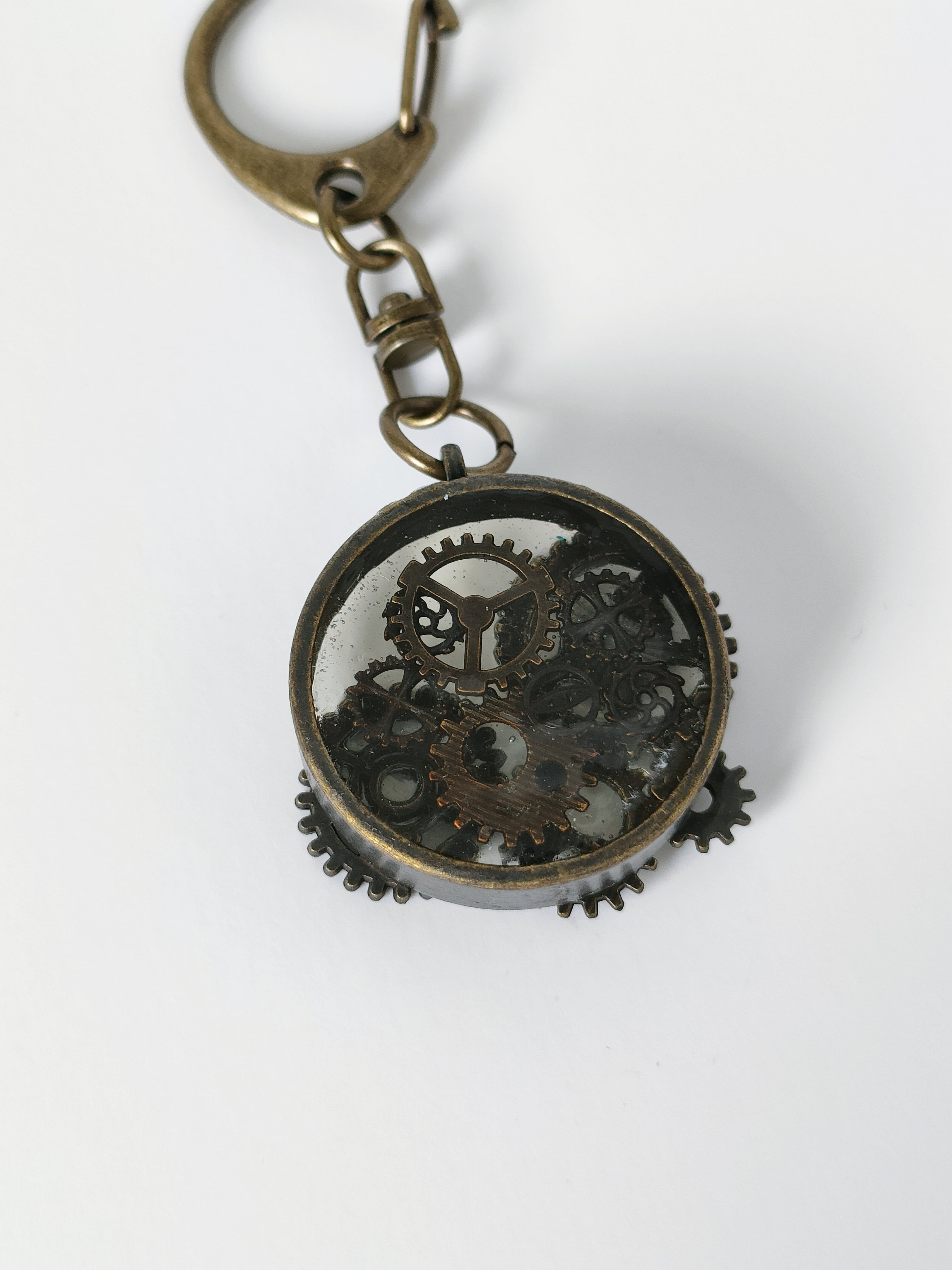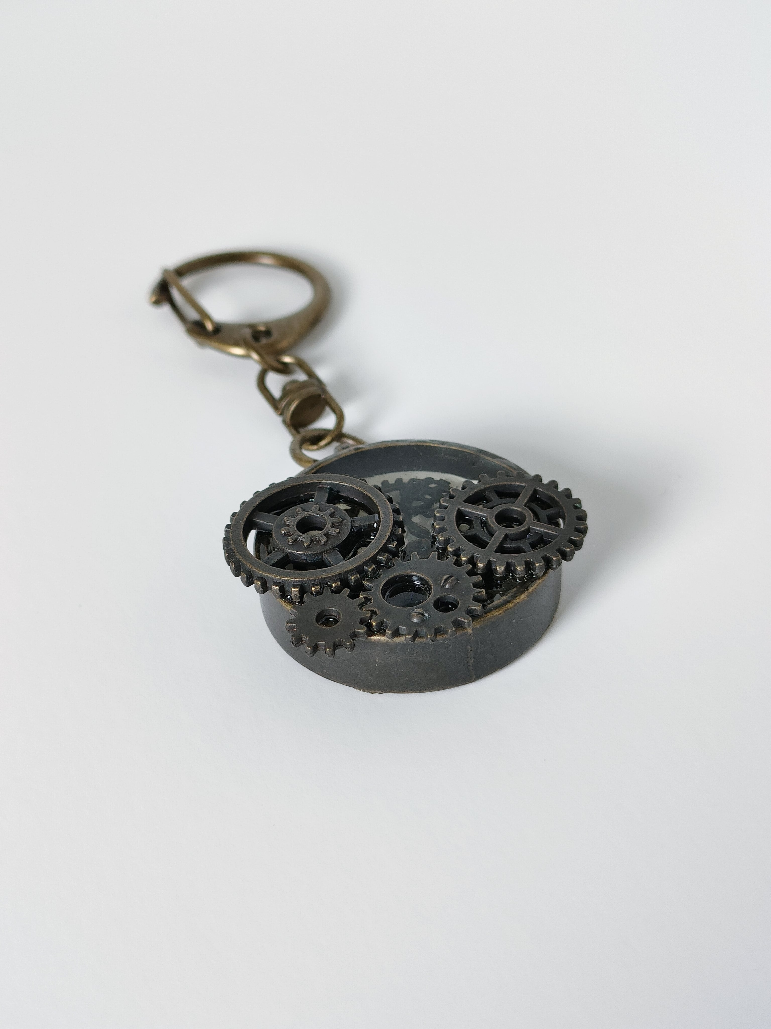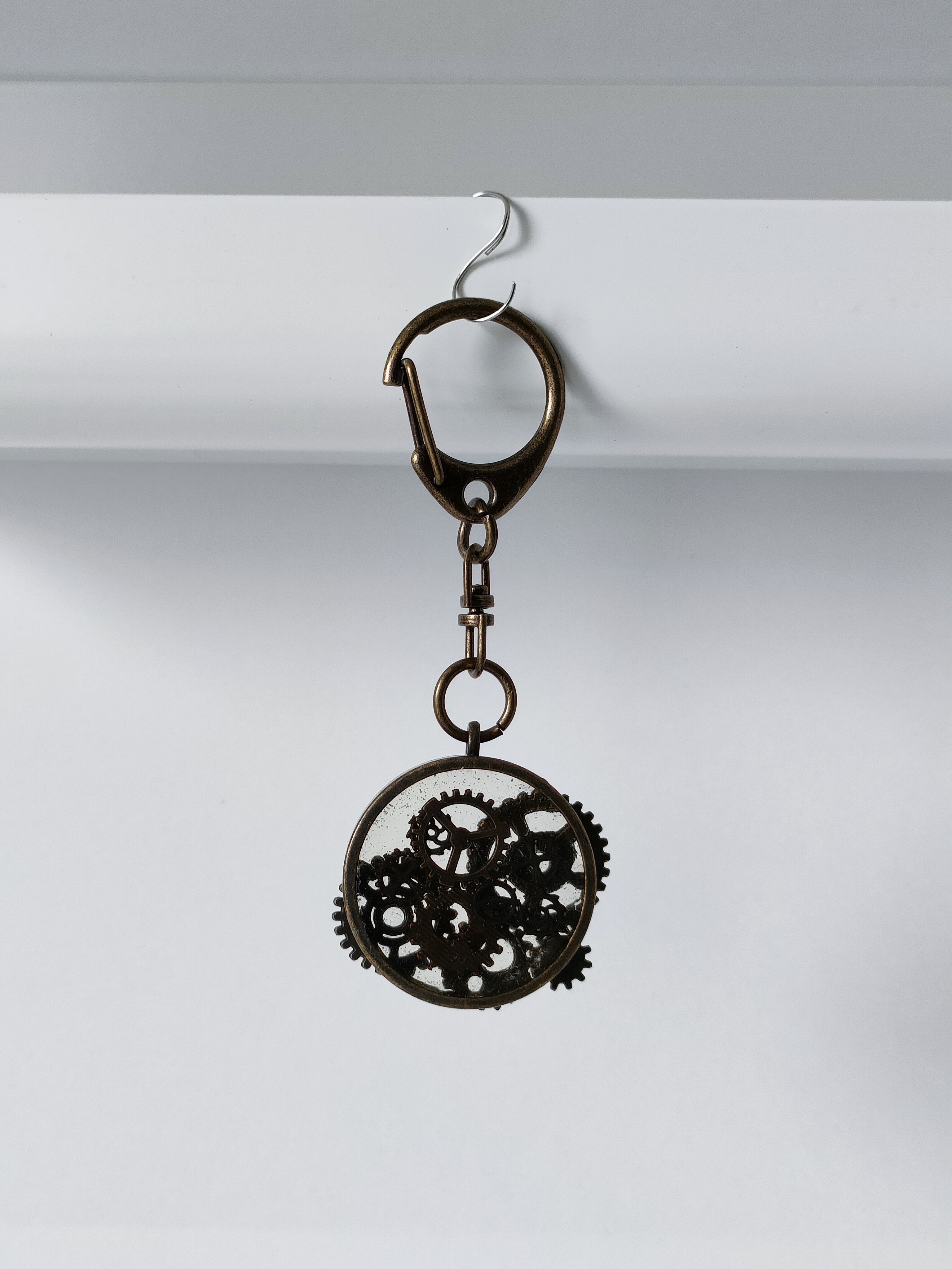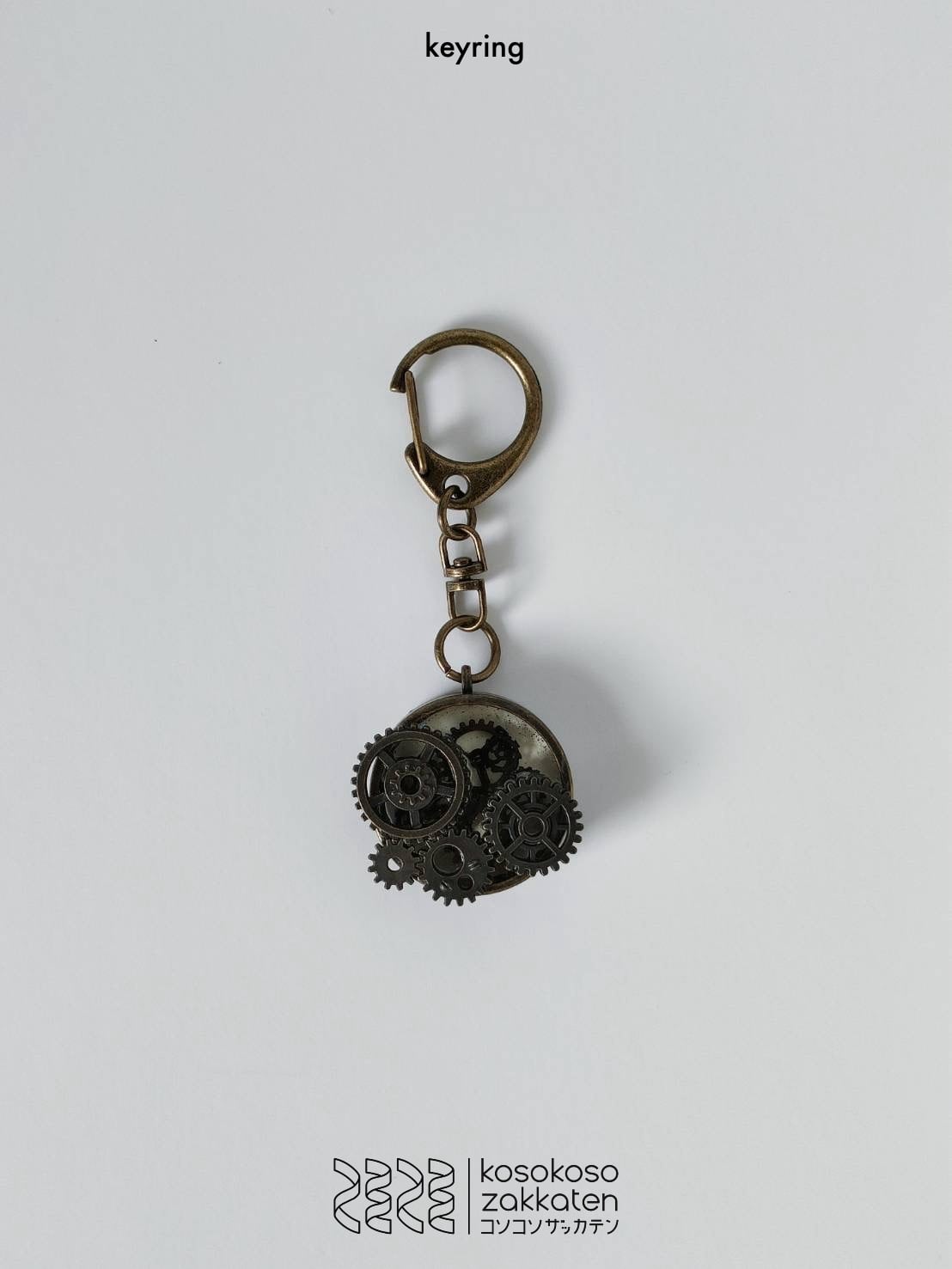 歯車の重なりと厚みが感じられる透明感のあるキーリングになっています。