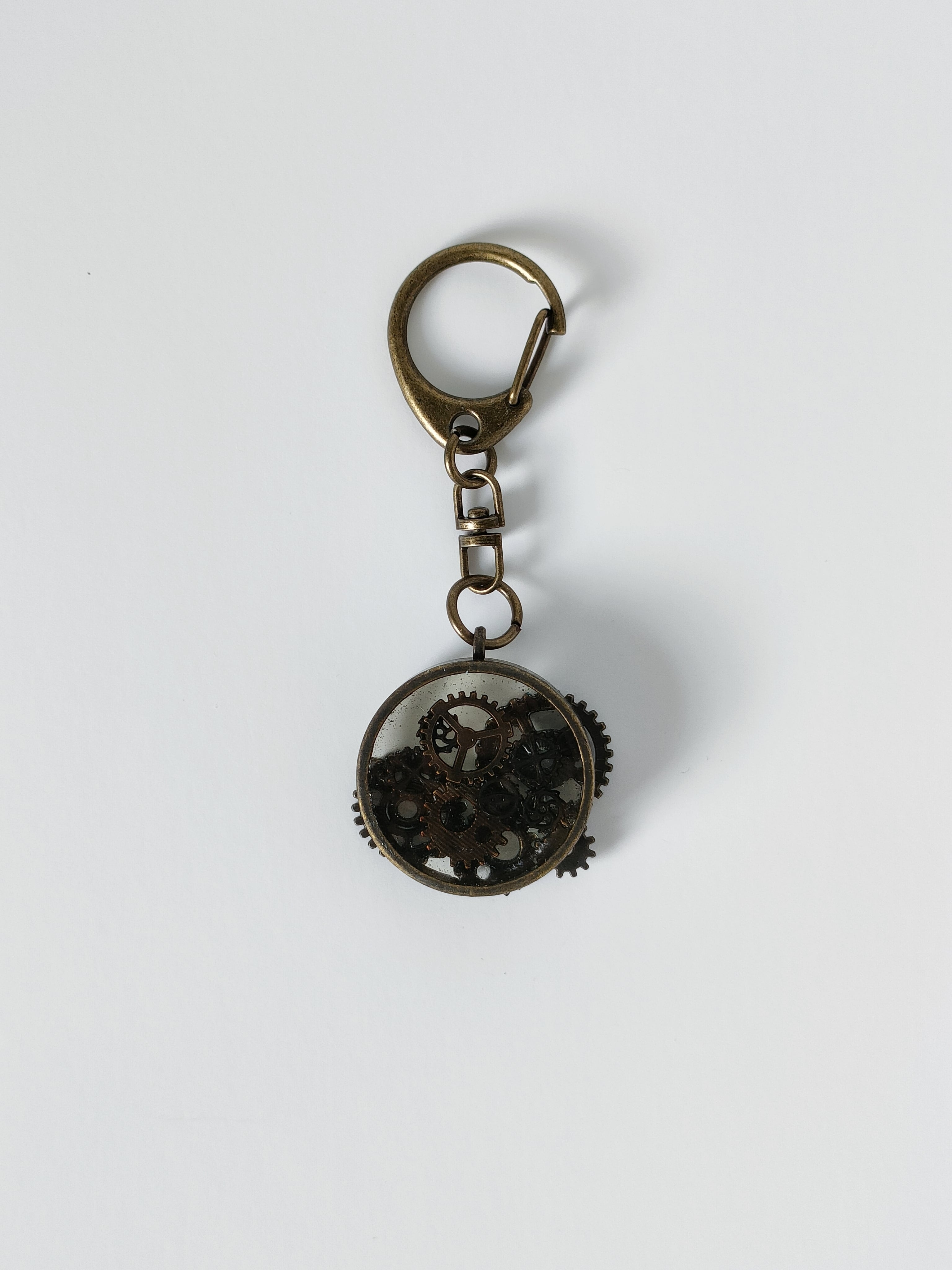 アンティーク調の金古美の歯車を使用した、スチームパンクをイメージしたキーリングです。