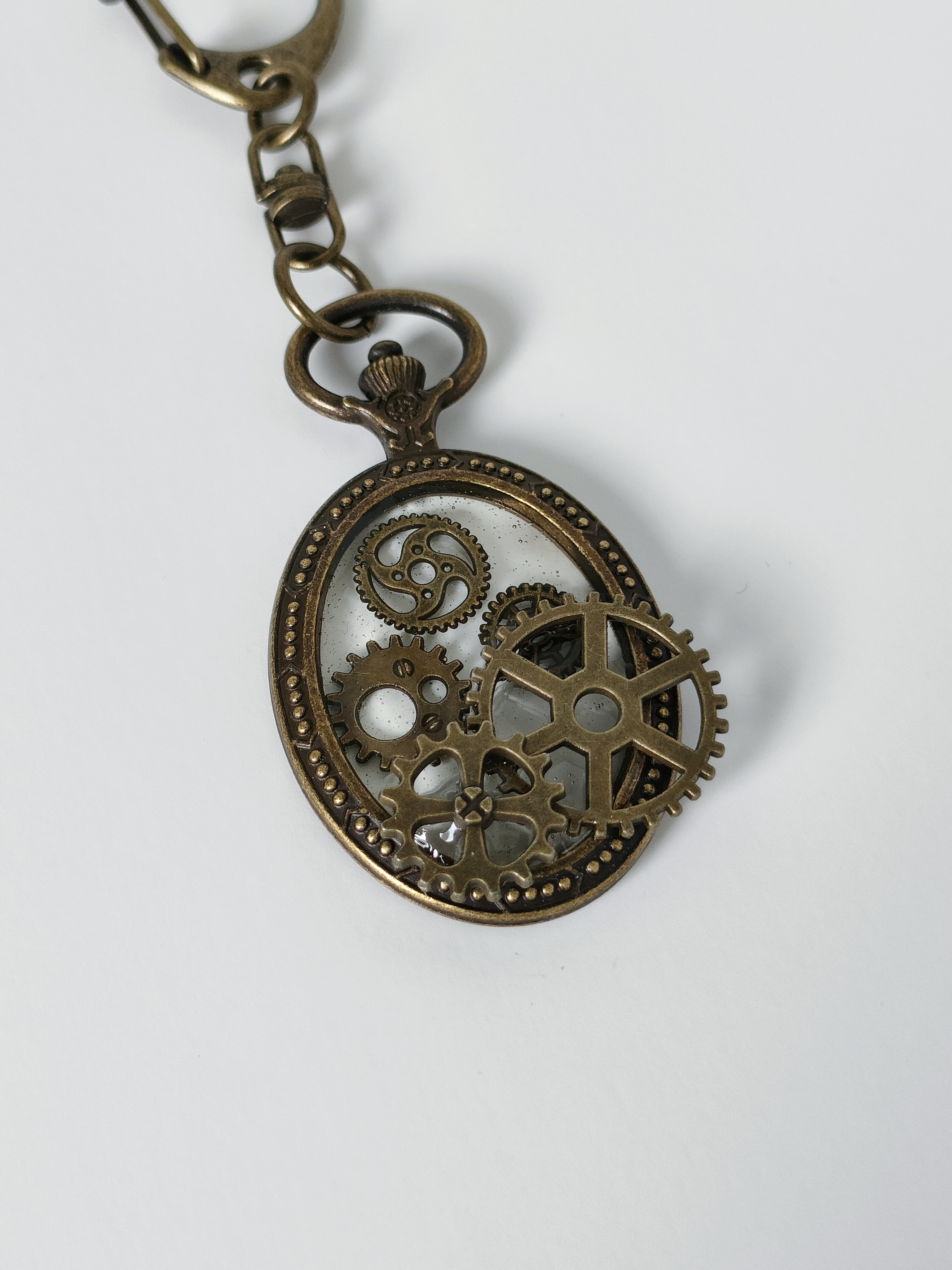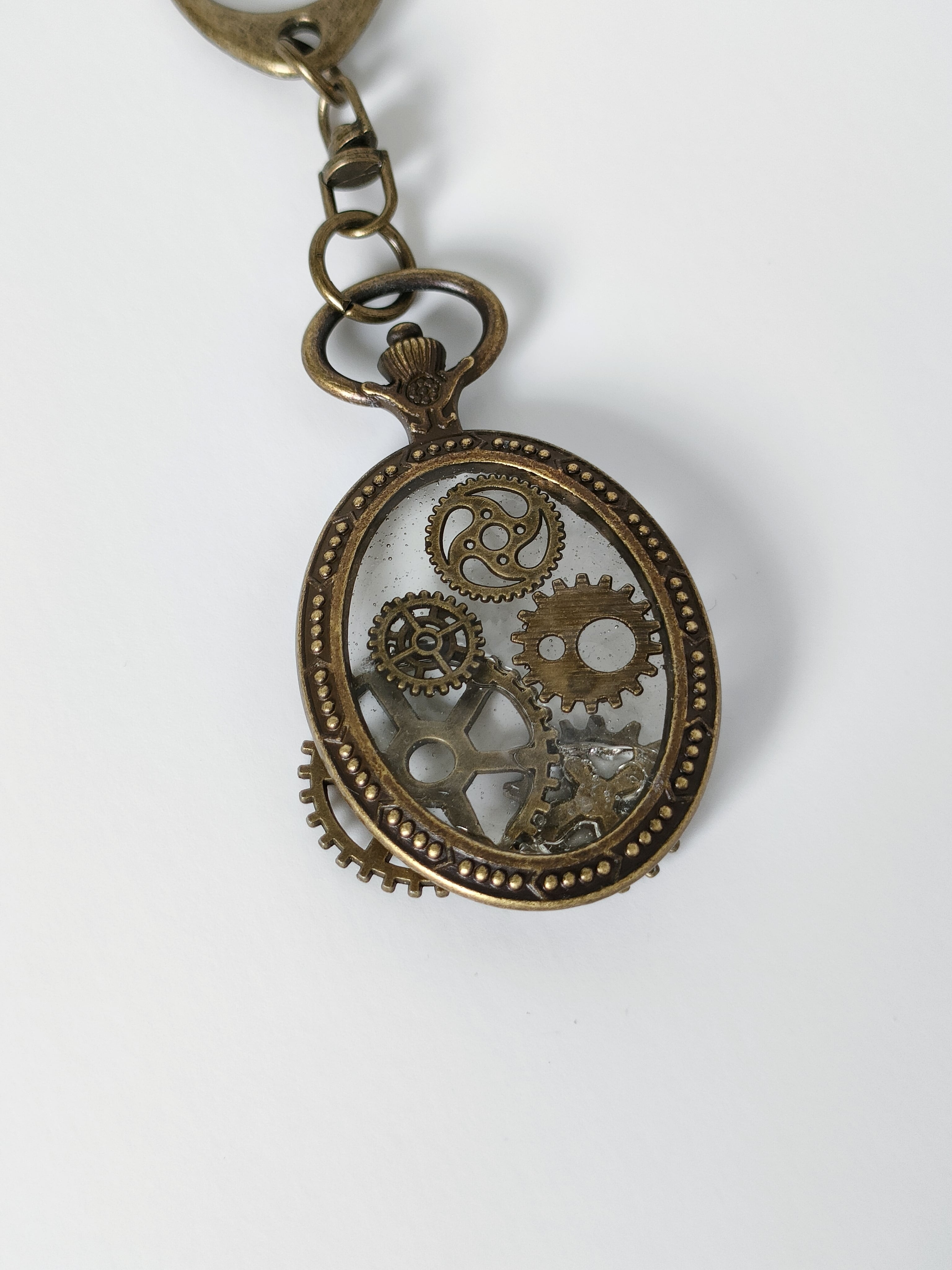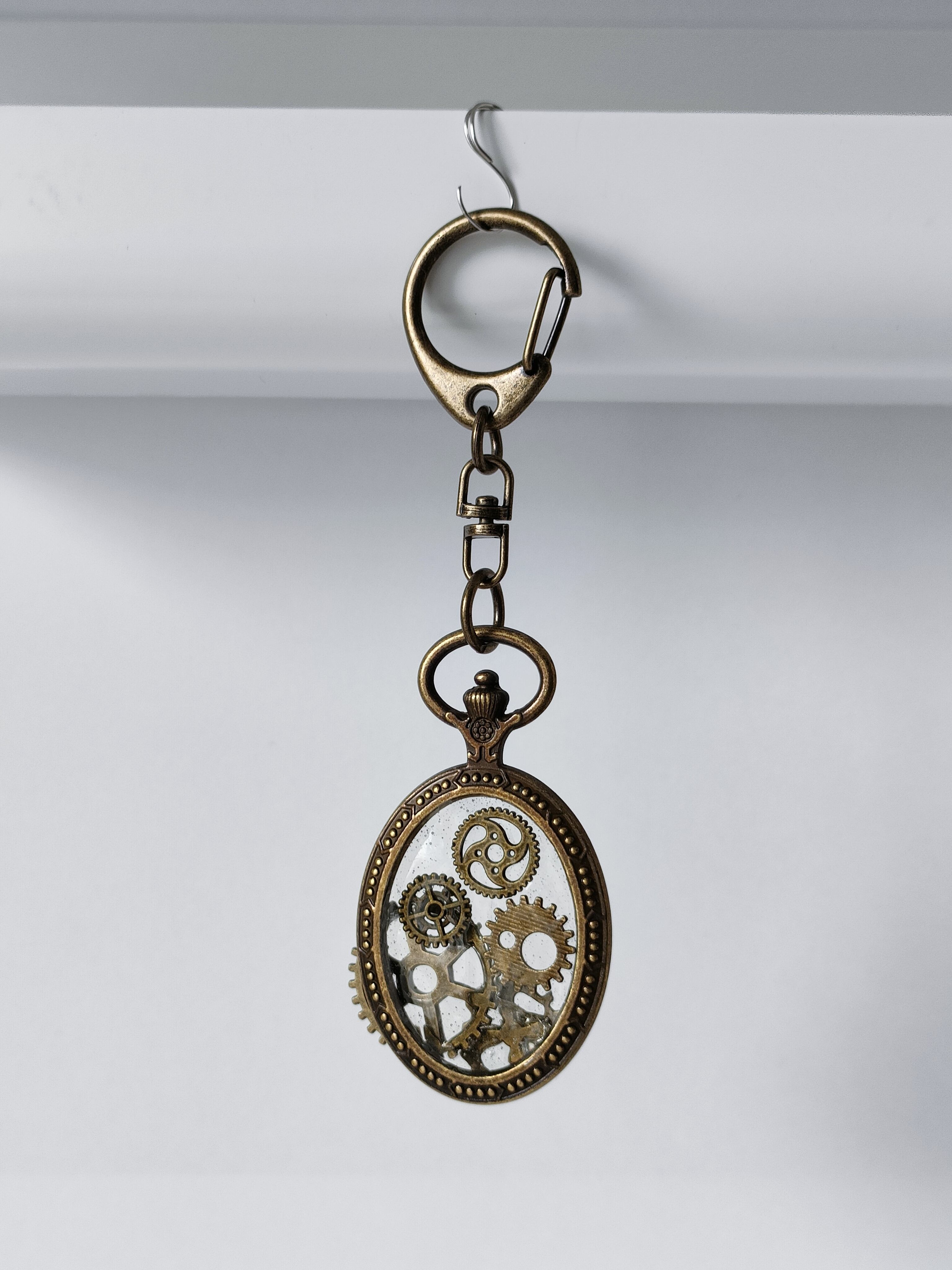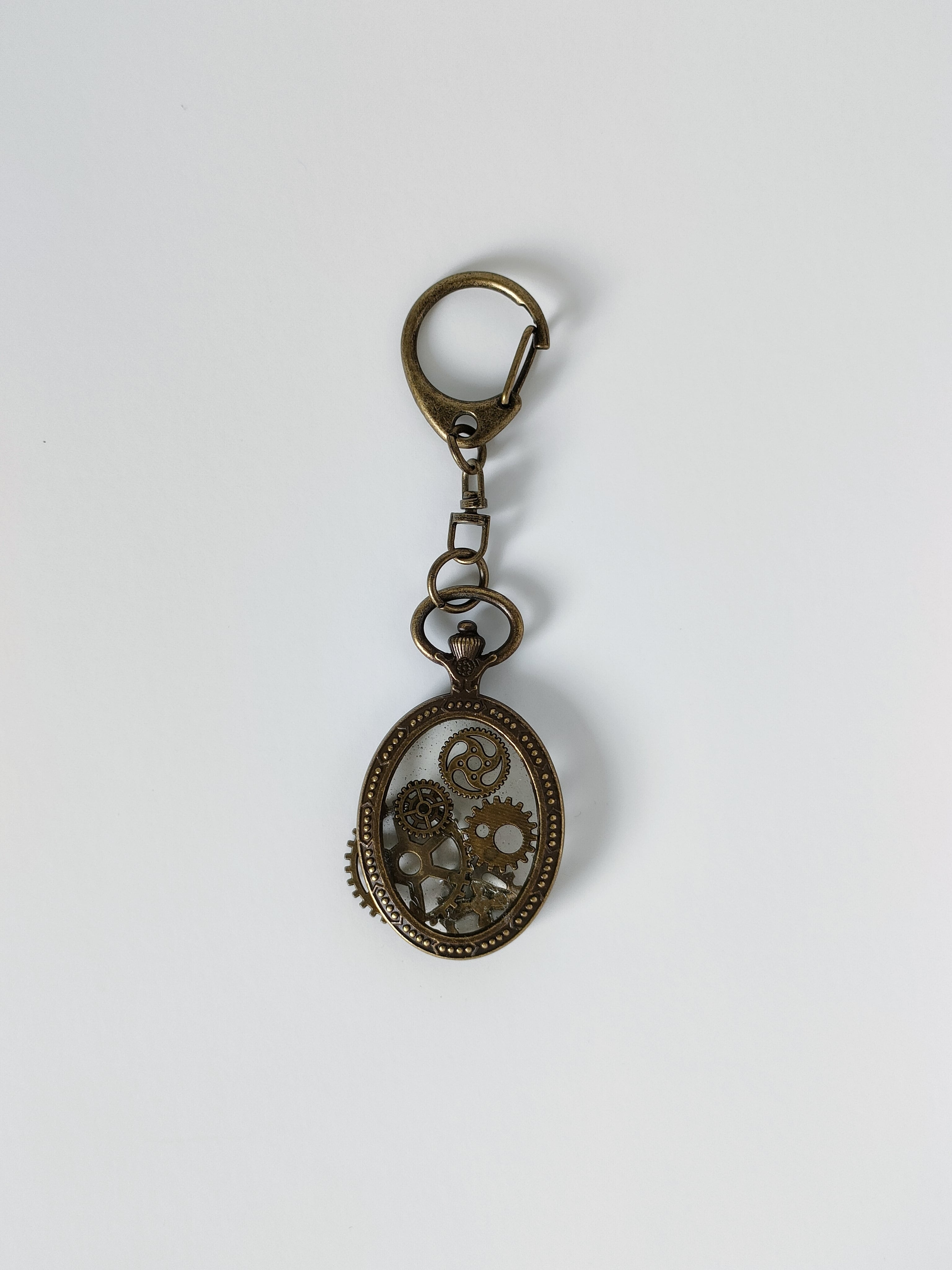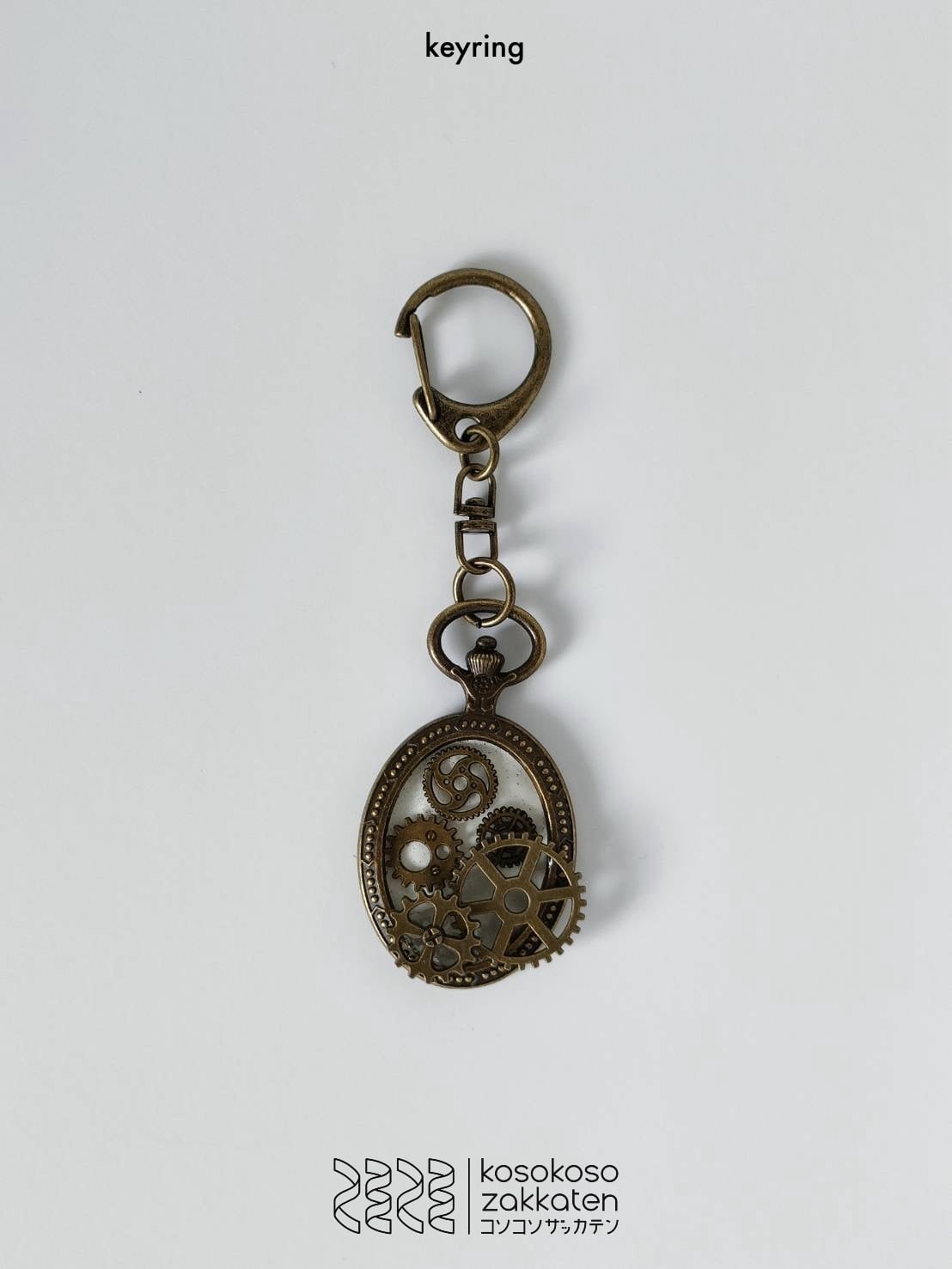 アンティーク調の金古美の歯車を使用した、スチームパンクをイメージしたキーリングです。