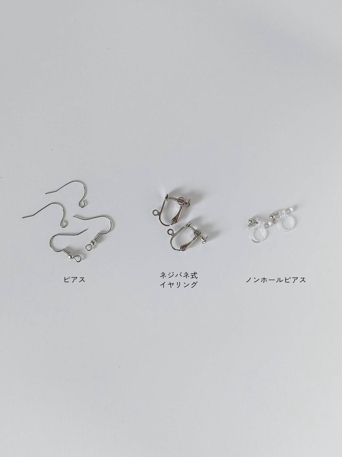 ※ノンホールピアスは、揺れと重みにより外れる可能性がありますので、ピアスまたはイヤリングをおすすめしています。